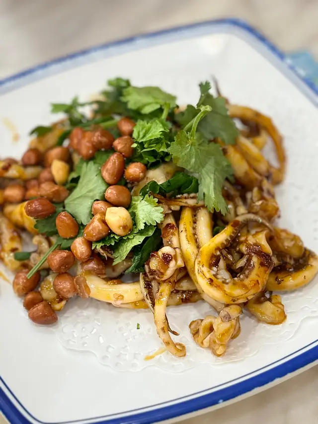 香辣醬汁,反而咸咸甜甜,很開胃,魷魚爽口唔韌,誠意加配有鹽脆花生,份量唔算多。