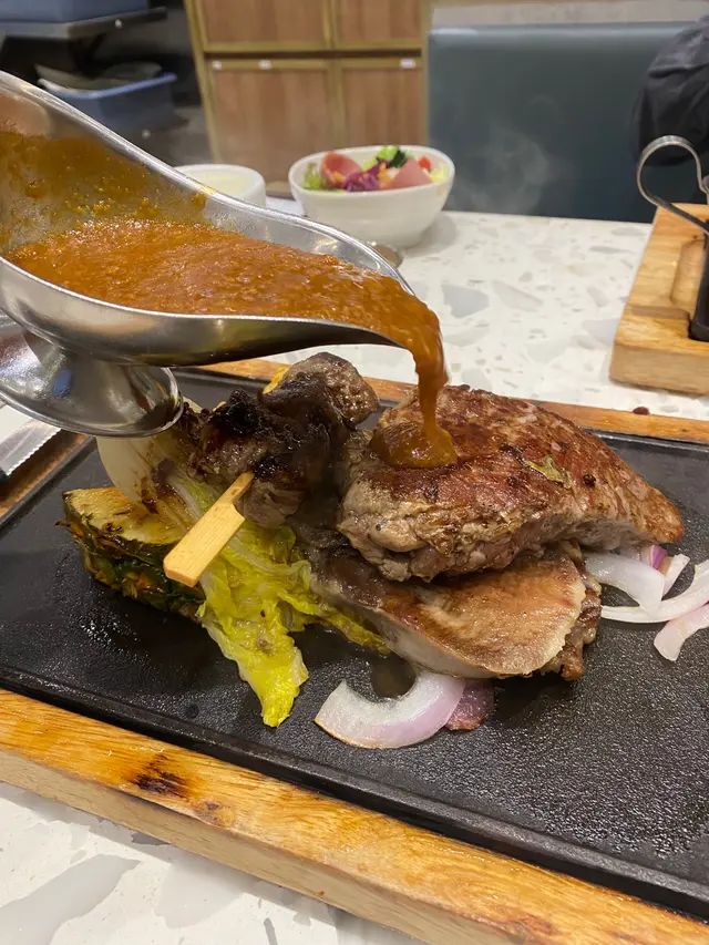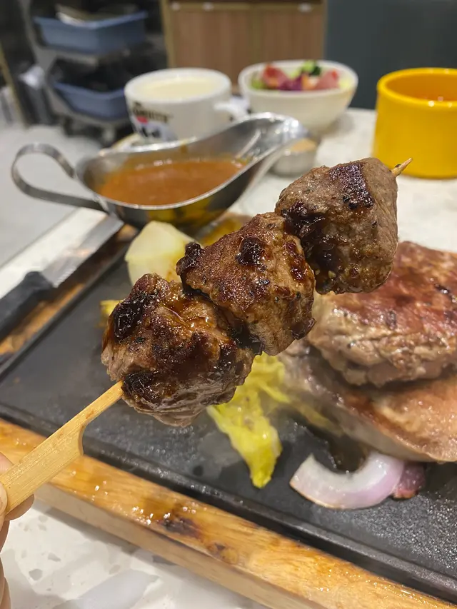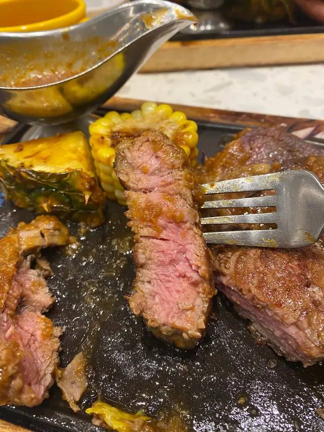 分別有牛柳,安格斯牛串同牛舌😍鍾意食牛嘅人一定好鍾意,因為啖啖都係牛🤭有得揀熟度,我就揀咗5成熟,里個熟度最好食🤤我揀咗蒜蓉汁,味道合宜!!個底仲有啲配菜,好得,有菠蘿,娃娃菜,粟米,炸蕃薯粒!!👍🏻👍🏻