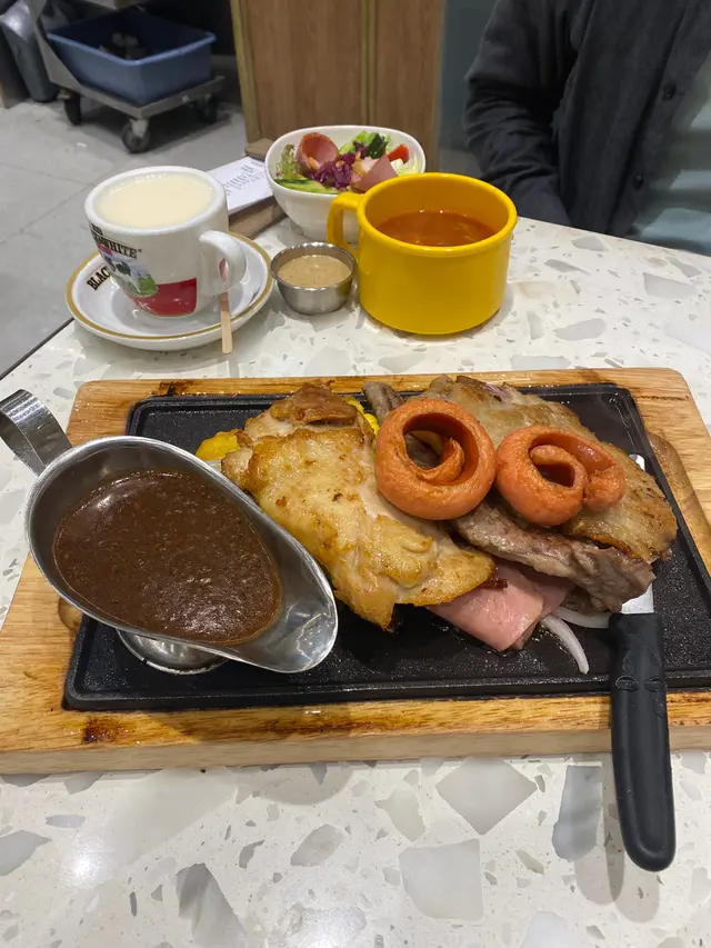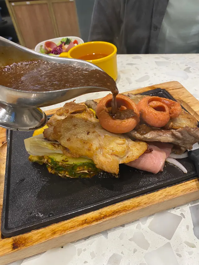 食肉獸留意🤭一次過滿足晒你四個願望,非常抵食!!有雞扒牛扒豬扒,仲有腸仔同火腿😳絕對對得住呢個價!上菜嘅時候,成座山咁,好誇張😂同樣地都有嗰啲配菜👍🏻