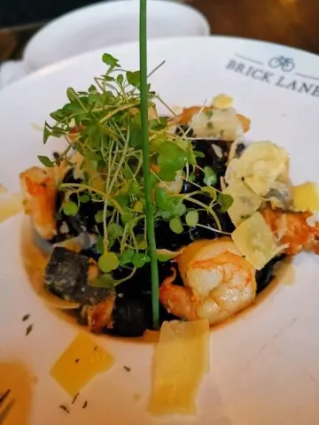海鮮墨汁意粉,墨汁平均沾滿咗喺彈牙嘅意粉上面,中間仲有濃濃嘅芝士,配上煎香咗嘅新鮮海鮮,成道菜嘅海鮮味非常之重,我個人認為呢個意粉必食。
