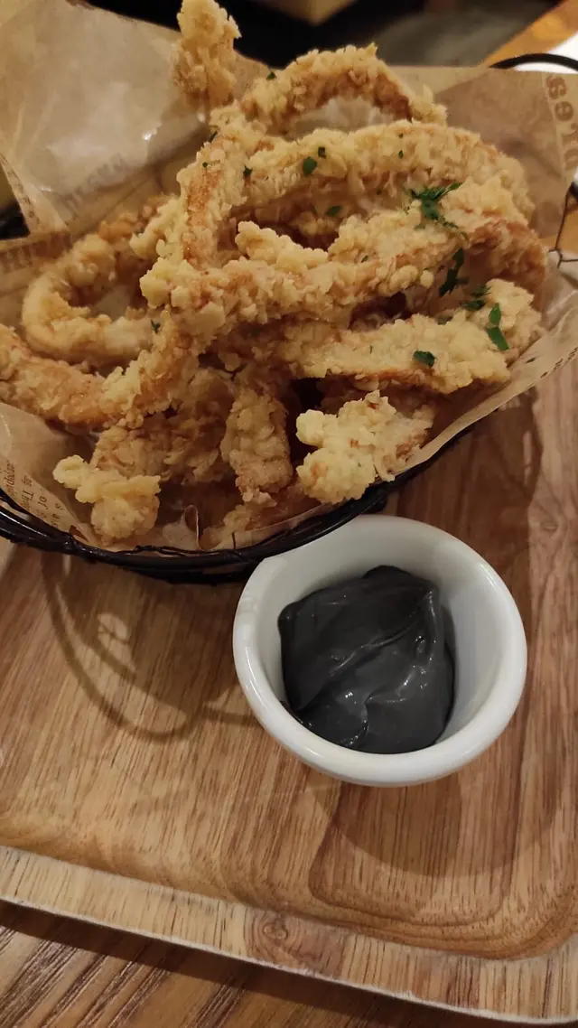 我們也加了一個炸魷魚,非常酥脆,但配餐的汁醬,則比較平庸,與魷魚未能產生任何口感作用。單吃炸魷魚,感覺更佳