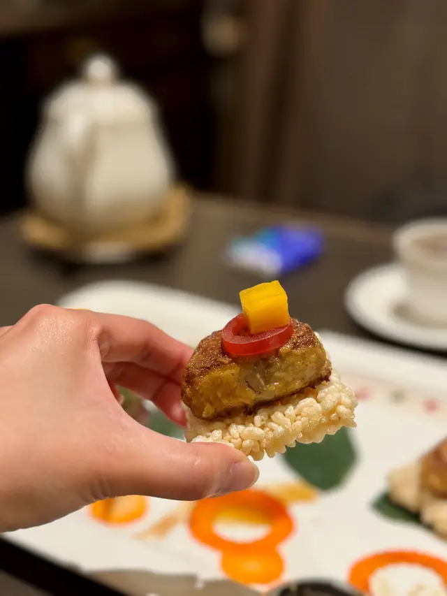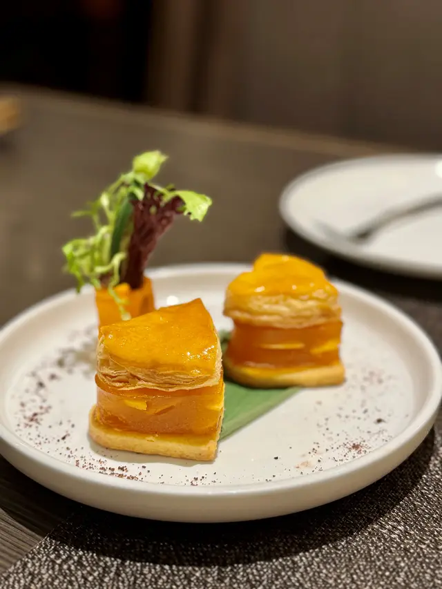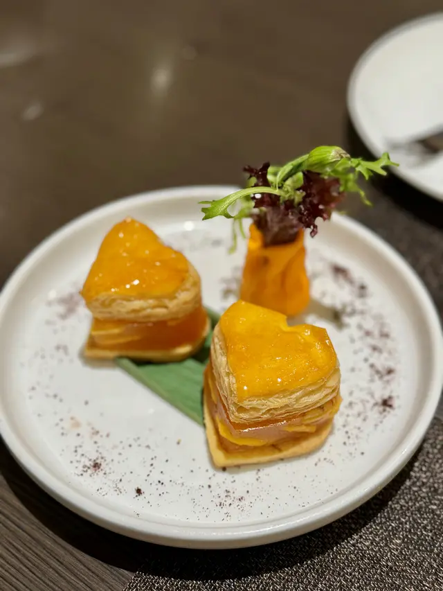以心型出現的酥皮馬蹄糕,可愛又吸睛,鬆脆多層的酥皮夾著軟糯清甜的馬蹄糕,為這頓午餐劃上完滿的句號。