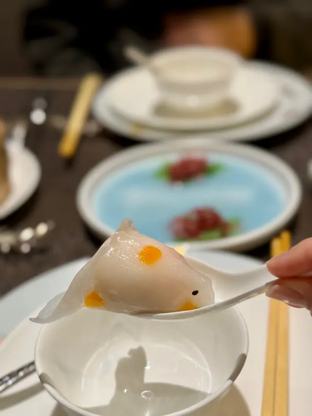 金魚餃飽滿,咬開是啖啖爽口蝦肉,有竹笙的鮮甜。