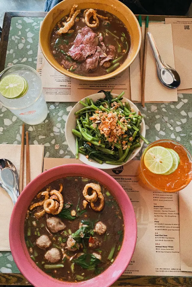 米芝蓮泰國菜🇹🇭 littlemoonlandLevel 22022-01-22210 views Follow 到訪藍屋,順道嚐嚐這家米芝蓮泰菜餐廳🇹🇭到店時已非午餐高峰時段,卻人頭依舊。坐下後,跟朋友分別點了招牌泰式豬肉濃湯河以及和牛濃湯河。兩碗麵的湯底均非常濃郁(說它為整碗麵的靈魂也不為過),即便是一口接一口地喝下去,也完全沒有人工調味那種會往下掉的口感,飯後亦沒有出現口乾舌燥。衝著湯底,絕對會去再嚐一次♥️The above review is the personal opinion of a user which does not represent OpenRice's point of view.LikeShare米芝蓮泰國菜🇹🇭 Samsen 泰麵 https://s.openrice.com/QrKT0DS9100Report Post Ratings5Taste5Decor5Service5Hygiene3ValueDate of Visit2022-01-21Waiting Time15 Minutes (Dine In)Spending Per Head$200 (Tea)