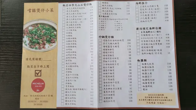 兩小時的等候時間雖然誇張, 餐廳也沒有華麗裝潢, 幸好食味質素也很好, 尤其煲仔飯和燉湯都十分出色! 👍🏻 人客太多, 侍應不能如高級餐廳招呼周到, 但也不忘教大家煲仔飯的進食方法 😉 除了煲仔飯及小菜外, 餐廳還有點心供應, 似乎點心質素也不錯, 晚上九時後還有人點外賣點心! 上次已說, 大廚曾在陸羽茶室工作過, 確實青出於藍, 雖然豬肺湯陸羽還是略勝一籌, 但其他小菜我認為嚐囍更優質, 而且性價比高! 😁