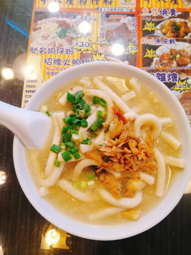 湯底係濃稠嘅質感 有冬菇碎調味 上面鋪滿菜甫 鹹鹹地真係好惹味好香❤唔夠嘅話仲可以自己加架😂😍狗仔粉淋淋地但不失咬口 滑捋捋嘅口感真係好正😳咁有香港特色嘅小食 值得一試呀❤