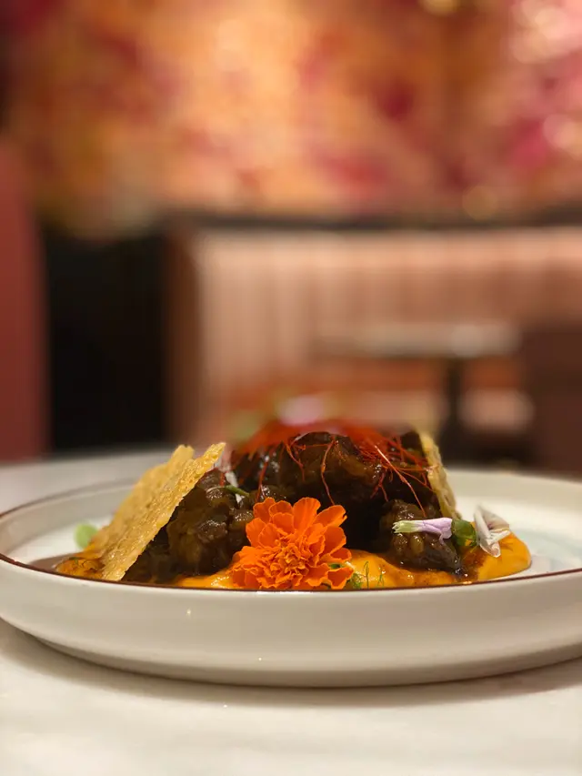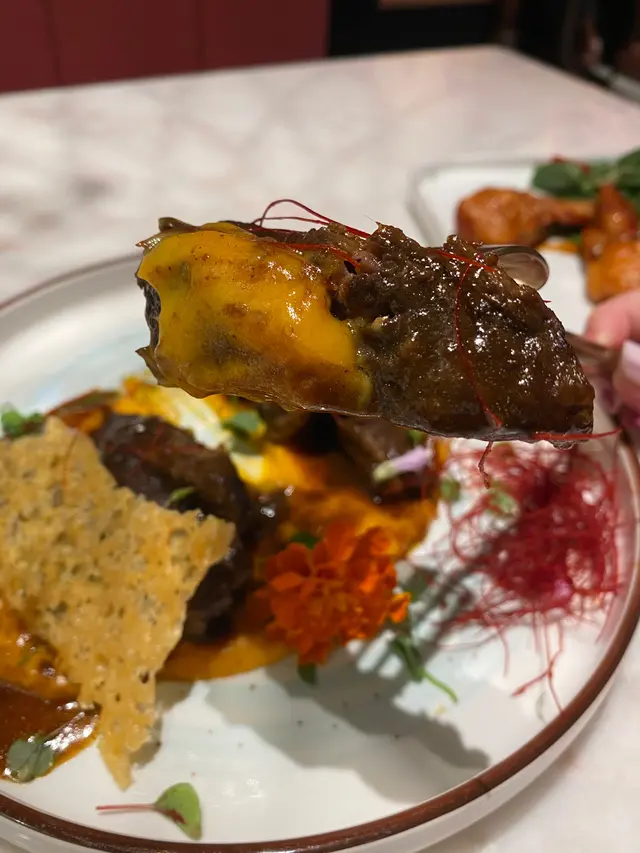 慢煮的牛肉真的很嫩,而且很入味,最大特色应该是同时配上了牛肉酱和番薯酱。牛肉酱令牛肉更香,而番薯酱则带来了全新口感!微甜的番薯配上牛肉,竟然超级好吃!非常推荐👍🏻旁边的薄饼也又脆又香,带有芝士味。