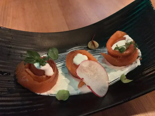 鮭魚似輕微煙薰過黎,啲奶油唔膩,仲卷到好似花形咁,好精緻