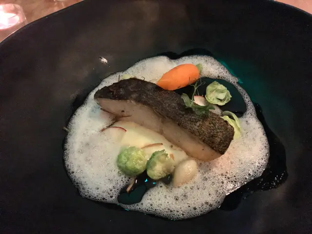 主菜係:香煎黑鱈魚配忌廉薯,檸檬草及香檳泡沫($548)