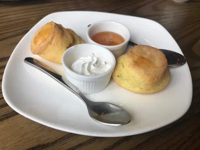 再黎係一碟兩件小鬆餅配蜜糖同忌廉,鬆餅味道都唔錯,加埋蜜糖一齊食味道都幾夾,如果配埋果醬會更加好。