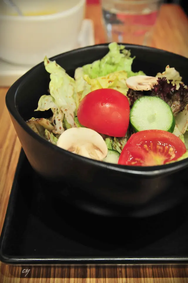 雖然份量小巧, 但材料豐富, 有車里茄, 磨菇, 青瓜, 羅馬生菜, 配適量黑醋, 很開胃。