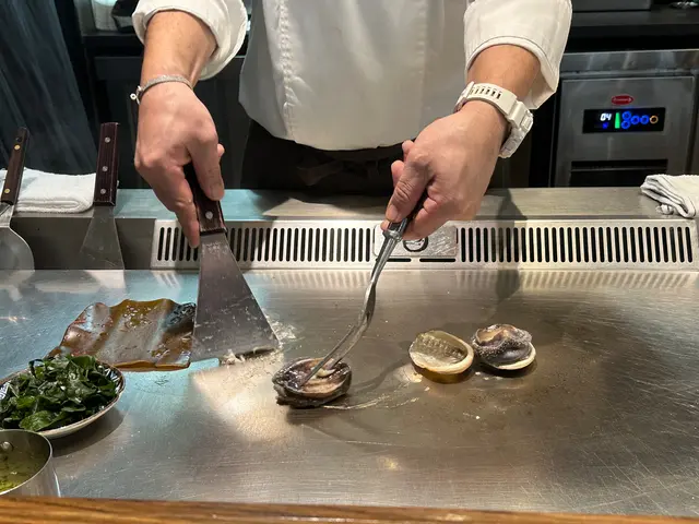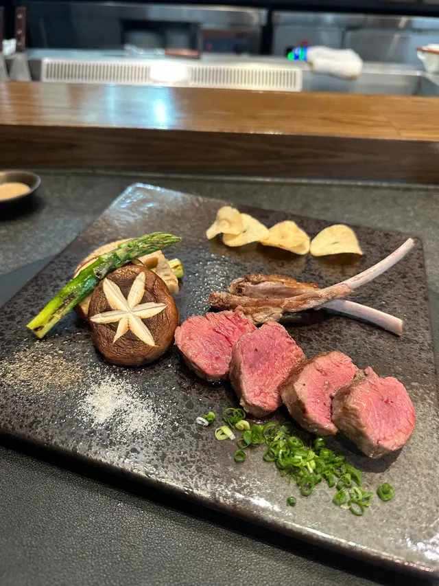 鮮活南非鮑魚新鮮度爆燈,鮑魚在烹調前不斷蠕動。我們坐在高枱,可以近距離觀賞日籍師傅的鐵板燒技巧。