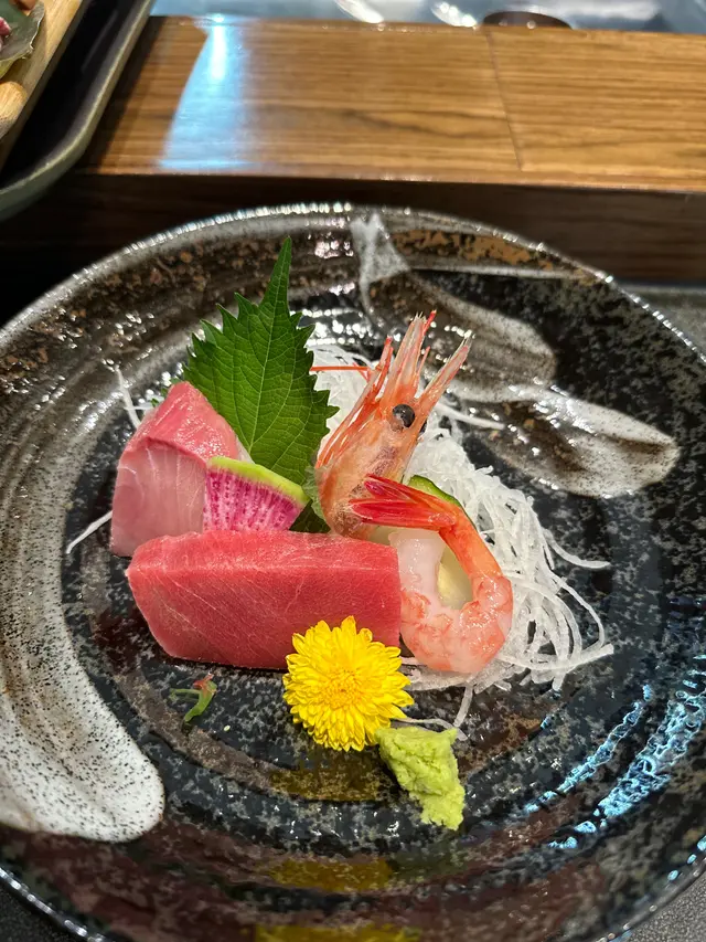 極上刺身包括甜蝦、赤身和油甘魚。赤身油潤甘香,油甘魚肉厚軟嫩。