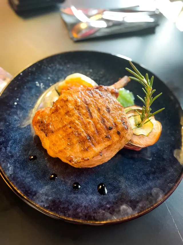 慢煮西班牙黑毛豬安($258) 一上檯就聞到好香嘅豬味🐷個豬烤得啱啱好🤪唔會煮得太熟😋保留到該肉汁🤫食落好juicy🥰個豬亦都好滑👍🏻真心唔錯!隔離有焦糖蘋果🍎令個肉食落更加fresh~
