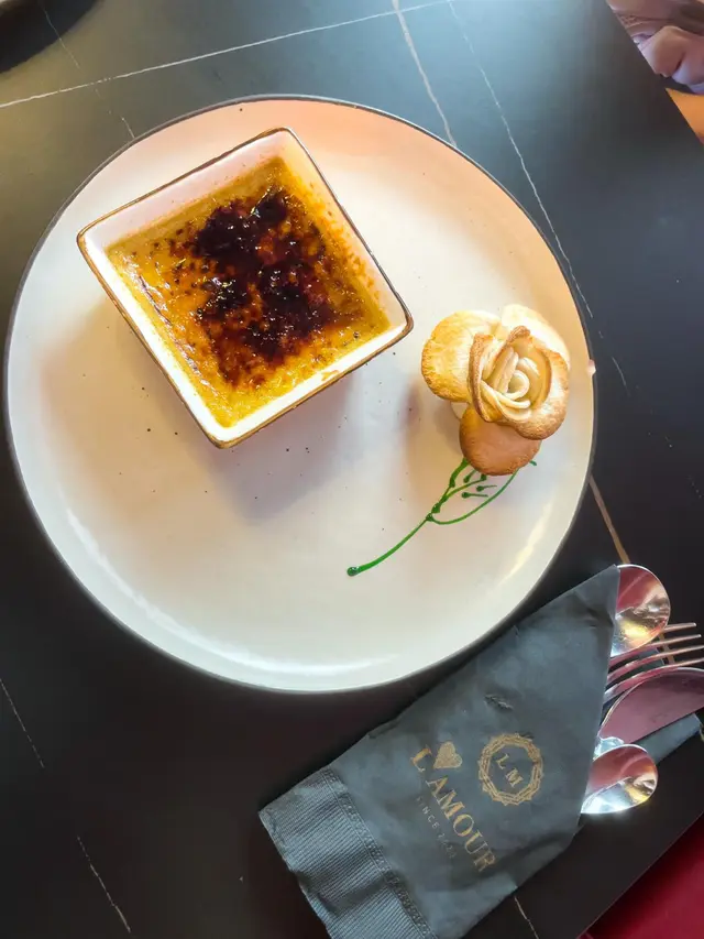 焦糖法式燉鵝肝($198) 個賣相同焦糖燉蛋一模一樣😂不過入面就係鴨肝蓉🐣上面就加咗曾焦糖🍮隔離有朵酥皮玫瑰花🌹可以撕開啲花瓣用嚟點個鵝肝😚不過食咗一半就已經覺得好漏😕