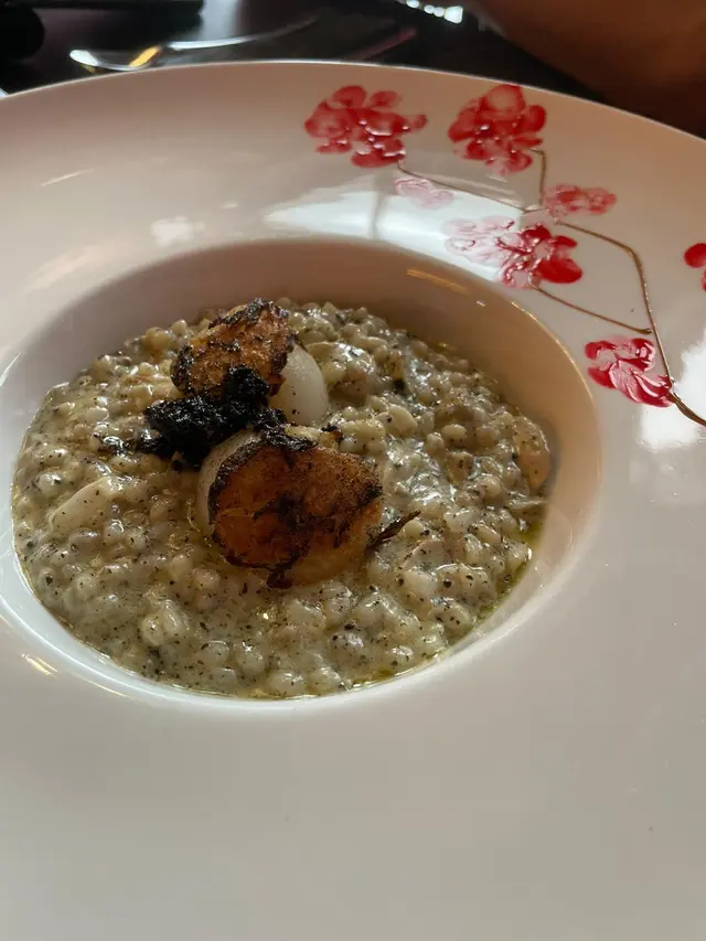 香煎北海道帶子惹米飯($198) 呢個己有驚喜🤩好好食😋啲薏米好有咬口😚撈埋啲白松露油同黑松露令個口感大大提升😌食落個質地唔會太乾🤫 d帶子都好食😽軟熟但唔腥🥰