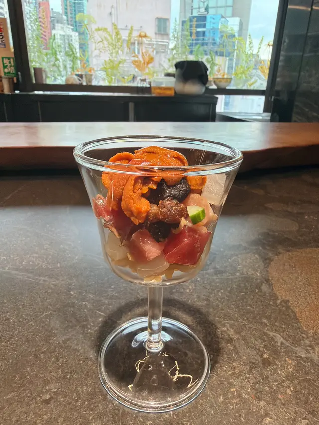 菜單由主廚安排,食材時令及新鮮,每道菜都展現主廚的匠心獨運,將法式與日式元素巧妙融合,顧客亦可近距離與主廚互動。