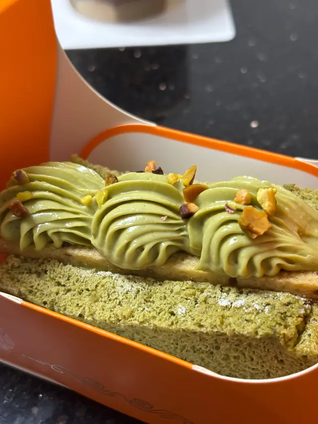 好食,香濃開心果芝士味,不甜!戚風蛋糕面上更有開心果碎,中間有煙靭麻糬,十分有口感🤤