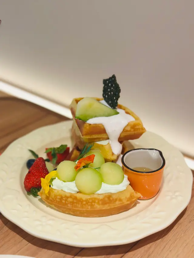 窩夫外脆內軟,搭配新鮮嘅蜜瓜同啫哩,甜度剛好,食落去真係令人回味無窮,彷彿重溫初戀嘅甜蜜感覺😋