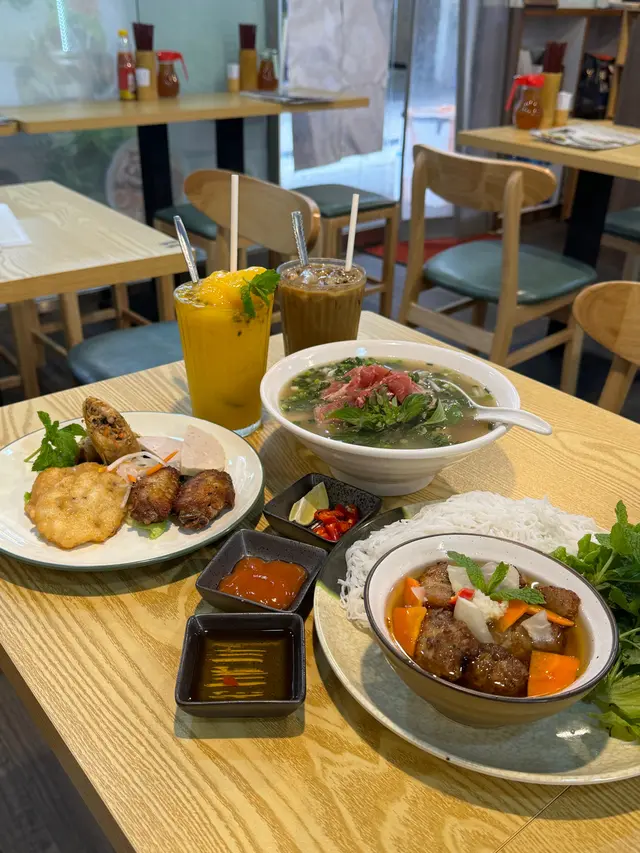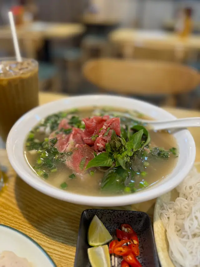 店員也推介我們試了他們的河內燒豬肉撈檬,果然燒豬肉香氣撲鼻,外焦內嫩,配上秘製的酸甜汁,非常開胃。而傳統生牛肉湯河則湯頭鮮美,牛肉軟嫩讓人回味無窮。
