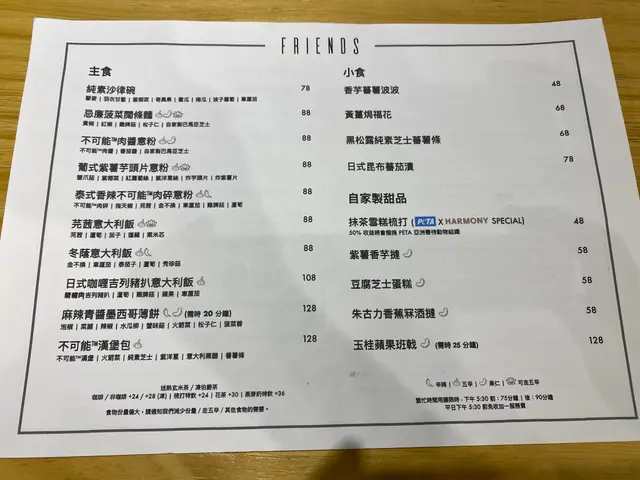 餐牌選擇眾多,有小食、沙律、Pizza、意粉、甜品等,全部都是素食,其中有不少創新Fusion菜式,十分有新意。