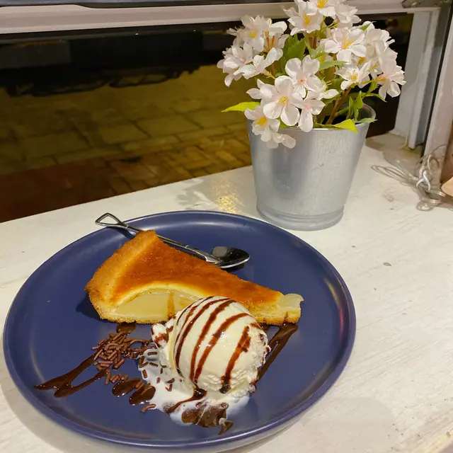 當天有5款甜品選擇 分別係啤梨撻 焦糖慕絲蛋糕🍰 經典蘋果批 檸檬批 朱古力餡餅