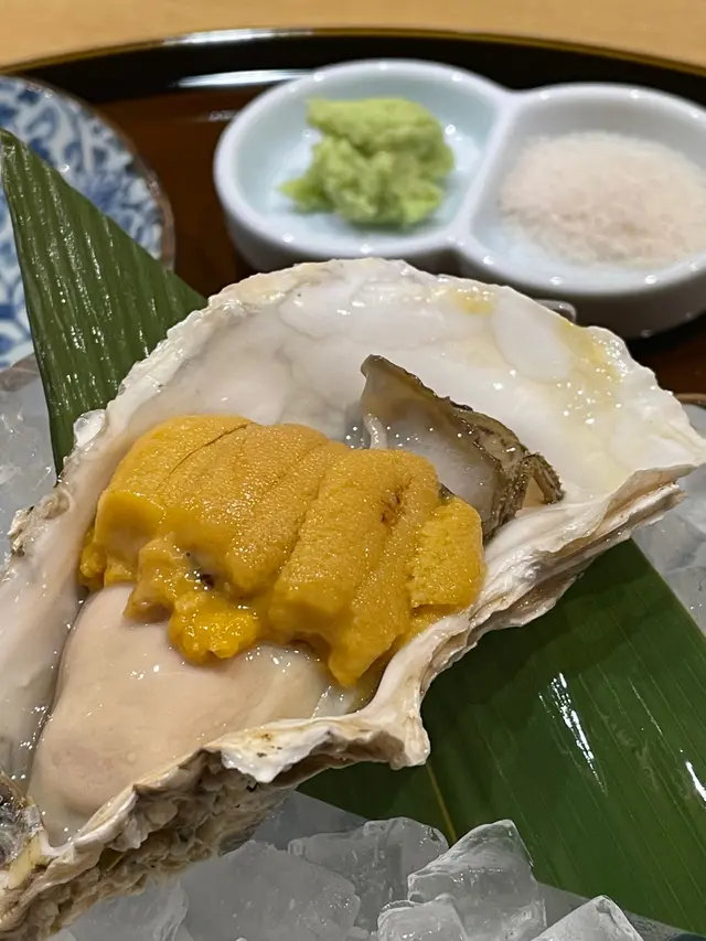日本生蠔配上紫海膽, 夾得黎唔會蓋咗雙方嘅味道, yum!