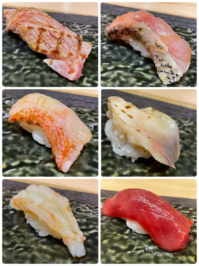 大拖羅 . 黑睦鯛 . 喜之次 . 醬油漬吞拿魚 . 右口魚邊…