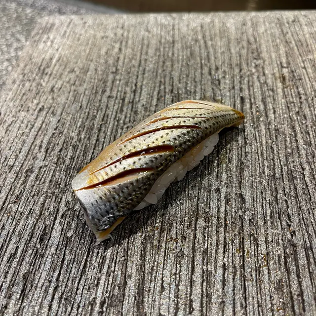 小肌是指十公分左右的小鰶魚,肉簿骨多很考驗功力,半邊魚身剛好握成一貫,而表面的幾道刻紋則令咀嚼時的口感更順滑。