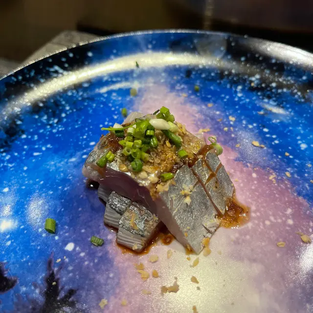 燒鰹魚是高知縣的名物,師傅以稻草把鰹魚的表面輕輕的烤熟,再切成片狀,吃的時候搭配以紅油炸過的乾蔥和蒜一起吃,帶點油香又不會太膩,還帶微微的草香氣。