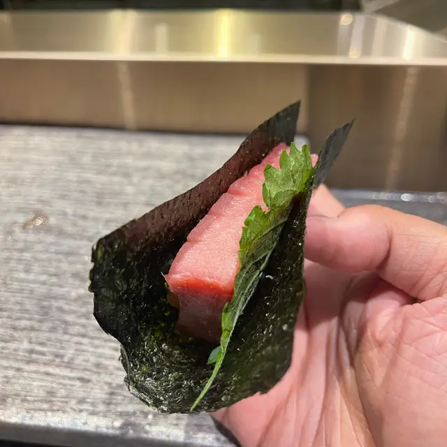 熟成超過20日的中拖羅魚香味濃郁,加上清新的紫蘇葉及自家製蜜糖醬,味道雜陳多變而又沒有半點違和感。