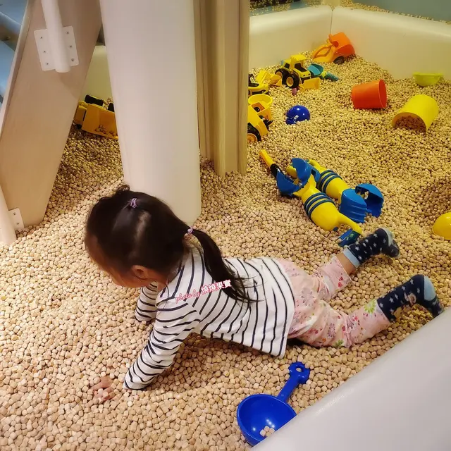 玩具設備齊全,滑梯,沙池,搖搖馬,戰車,化妝枱,超巿,廚房,lego, 繪本等等都未能盡錄。我家小姐就梗係最愛著公主裙啦~ 入沙池就記得最好著無袋既褲啦。。。。唔係就入曬入褲架啦!