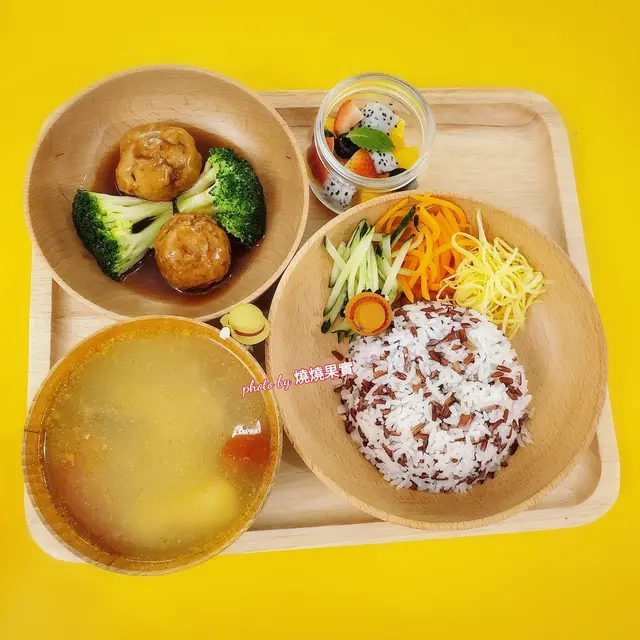套餐包括獅子頭,三色營養飯,養生湯和水果。獅子頭比平常見size 細,應該係專為小朋友而設。養生湯係大部份小朋友都愛的蕃茄薯仔湯。