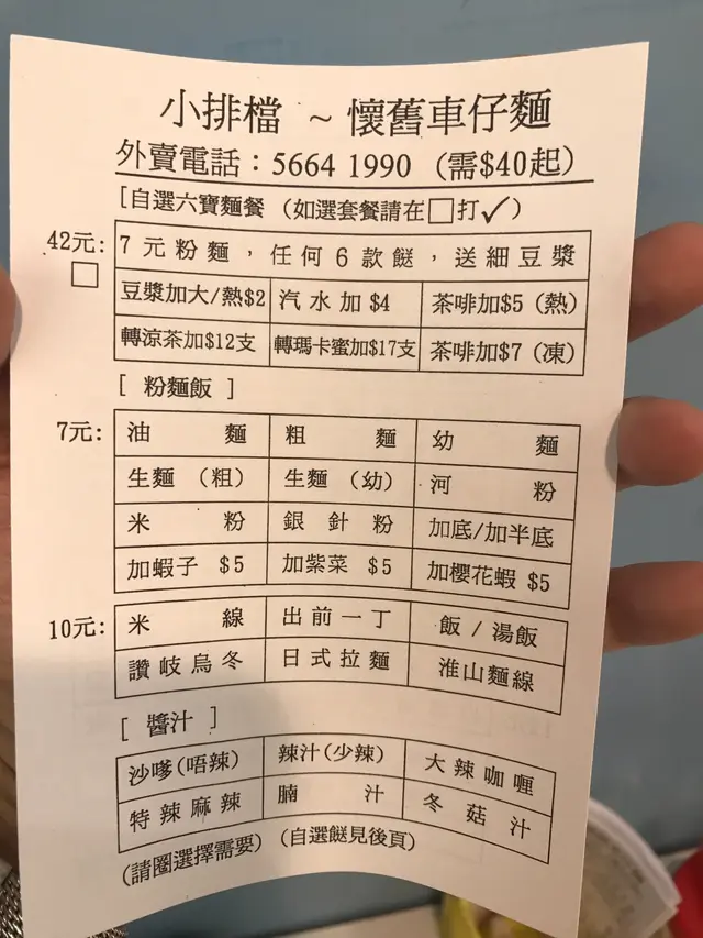 終於去咗呢到食車仔麵 eddie_ilovefood777Level 42017-08-211K views Follow 主打多款懷舊同特色味道的小排檔車仔麵雖然地方細小,但真係食出滋味六寶麵套餐$42六寶麵套餐 $42 加錢點了個淮山麵,爽口得嚟掛湯能力好高餸選了好甜嘅蘿蔔爽口麻辣豬耳,少有的果皮魚旦,蠔油冬菇,牛栢葉,豆卜,加少少豬油膏香好多,仲有必落辣菜脯提味更高醬汁魷魚$12醬汁魷魚$12 好入味香濃好正喔白雲豬手$12白雲豬手 $12 外皮爽口身脆口,入面好嫩腍,夏天食好正瑪卡蜜$20另外必試瑪卡蜜$20 清潤得嚟仲好多攻效 重點:逢星期六晚上7:30-8:30仲會有個惜食麵活動,持有長者咭可免費領取一份The above review is the personal opinion of a user which does not represent OpenRice's point of view.3Share終於去咗呢到食車仔麵 小排檔懷舊車仔麵 https://s.openrice.com/QrKT0sumh00Report Post Ratings4Taste3Decor4Service4Hygiene4ValueRecommended Dishes白雲豬手$12瑪卡蜜$20六寶麵套餐$42醬汁魷魚$12Date of Visit2017-08-08Dining MethodDine InSpending Per Head$60 (Lunch)