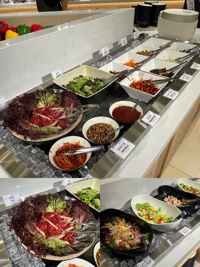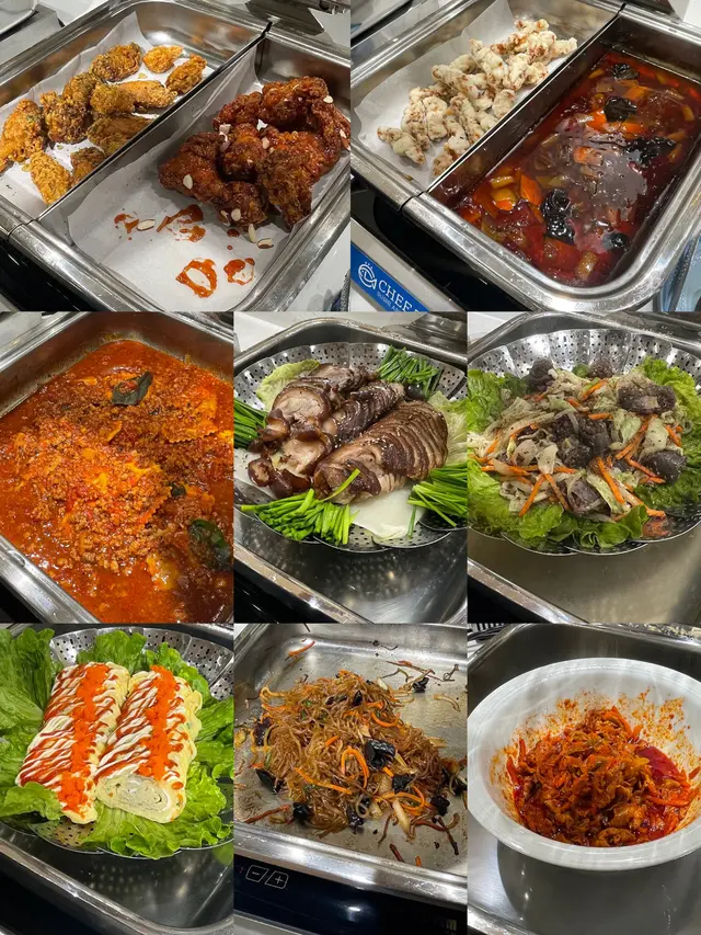燒烤與肉類區:烤五花肉、韓式烤牛肉、傳統韓國豬手、甜辣炸雞,炒白血腸蛋捲 、牛仔骨