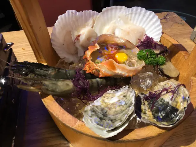 之後一坐底餐廳會每枱會送上一桶磯燒海鮮,有大虎蝦、活飽魚、元貝、甲羅蟹殻同美國珍寶蠔。以上如果再encore的話就要加錢,但兩個人食哂呢桶都好夠食