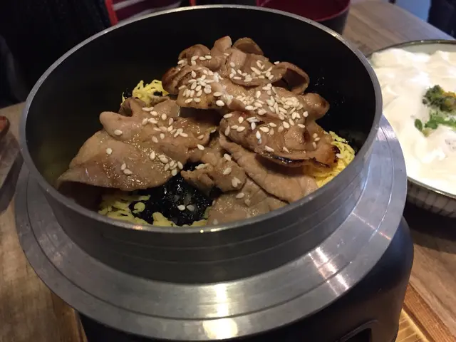 飯上面有黑豚肉, 紫菜同埋蛋絲。黑豚肉都有4-5片, 唔會好肥, 飯既份量都好足夠, 我好鍾意紫菜+飯, 因為食落好香, 加埋D醬汁, 係perfect!個鍋底重有少少飯蕉tim, 真係好滿足~