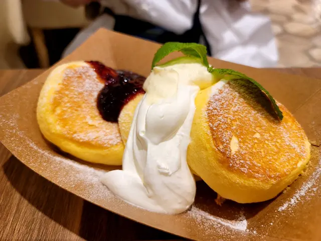 朋友佢就話想試芝士慕絲藍梅醬班戟$102, 賣相更吸引,鮮忌廉芝士慕絲好滑微甜藍梅醬再有層次,基本班戟已經好味陪醬就錦上添花。