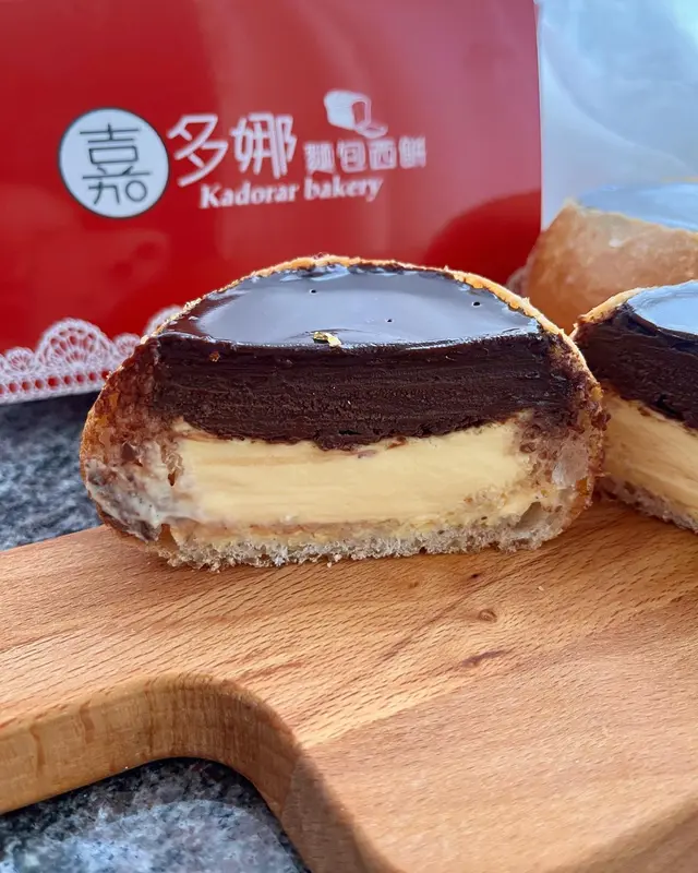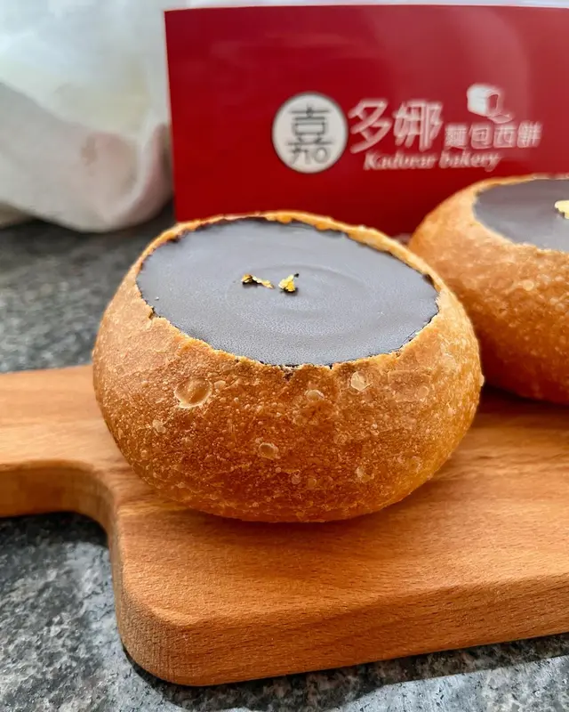 油麻地店嘅兩款特色布甸包都好出色(當然原味布甸包都好食嘅)所以佐敦店嘅朱古力布甸包我都幾期待下,雖然我平時其實都好少食朱古力🤣可以見到個朱古力層係好smooth咁仲有金箔點綴,就咁食同焗過之後內餡口感同味道就差別唔係好大,但個法包就會脆啲更好食,內餡朱古力層真係味道超濃郁,用70%黑朱古力整所以完全唔會甜,同下層嘅custard好match,我一個對朱古力冇咩特別嘅人都覺得係非常值得一試嘅布甸包😘