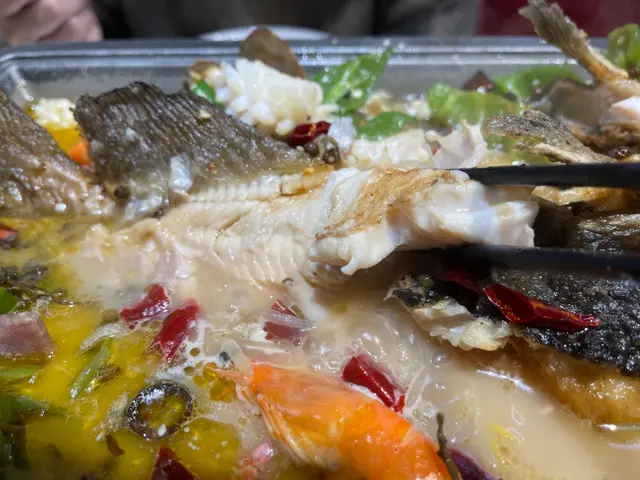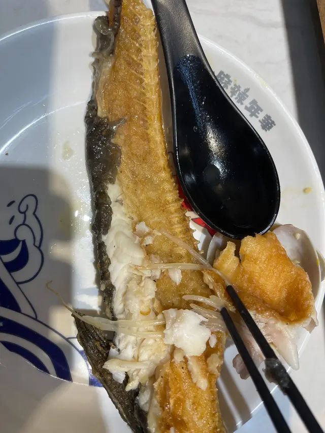 1.首先條魚真係好大條,估計真係足兩斤!成條魚煎過曬,咬落去好脆口,d魚肉又厚又甜,配埋d藤椒湯一齊食,真係好正,最重要係,條魚無骨ga!