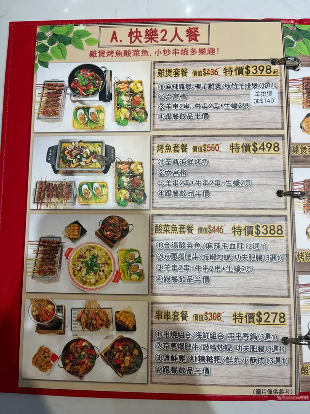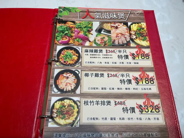 Menu好靚,而且選擇超多,有麻辣雞煲,椰子雞煲,酸菜魚,燒烤,烤魚,琳瑯滿目,最後我地都係叫返服務員介紹下,哈哈