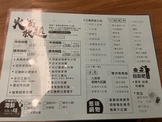 [絕無下次] 垃圾食物值188元 nataliengaiLevel 42022-09-091K views Follow [不推薦] 伏,188元放題邊爐其實188元都唔預有咩好嘢食!!職員係你坐低先講牛肉,羊肉,肉丸嗰行只係嚟一次就無,不過都唔緊要,但認真睇有兩樣嘢食: 豬手,牛坑腩?打邊爐食㗎嗎? 根本唔係用嚟打邊爐,更加唔會想食。不過都唔緊要,睇吓餐牌同出面可以拎嘅嘢食,曄,基本上係無咁濟,好似啲剩肉剩菜,菜都無丫,十樣有九樣都無,難度食牛舌雞子放題??真心無下次!食出面一人火鍋都無咁嬲 — at 天水圍開爐重慶老火鍋!!1The above review is the personal opinion of a user which does not represent OpenRice's point of view.LikeShare[絕無下次] 垃圾食物值188元 映玥樓 https://s.openrice.com/QrKT0UYP500Report Post Ratings1Taste1Decor1Service1Hygiene1ValueDining MethodDine In