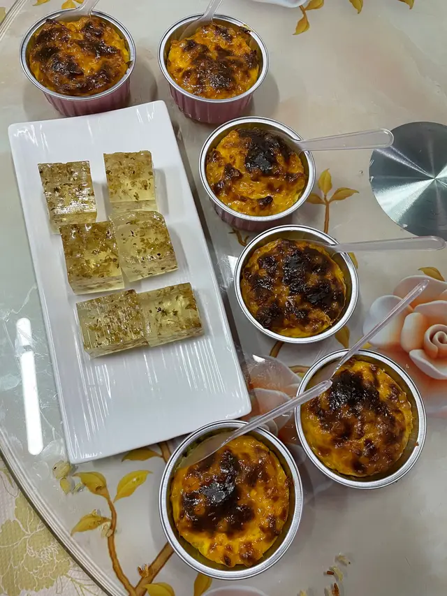 西米焗布甸配桂花糕:布甸裏面有豆沙,桂花香氣撲鼻,兩款甜品都唔係太甜,真係完美😋