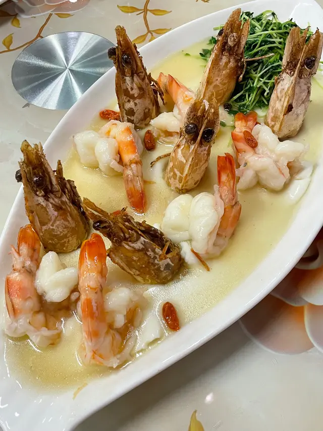 花雕蛋白虎蝦皇:虎蝦爽口鮮甜,蛋白嫩滑,配上香濃嘅花雕酒,而蝦頭炸到香脆可口,非常好味😋