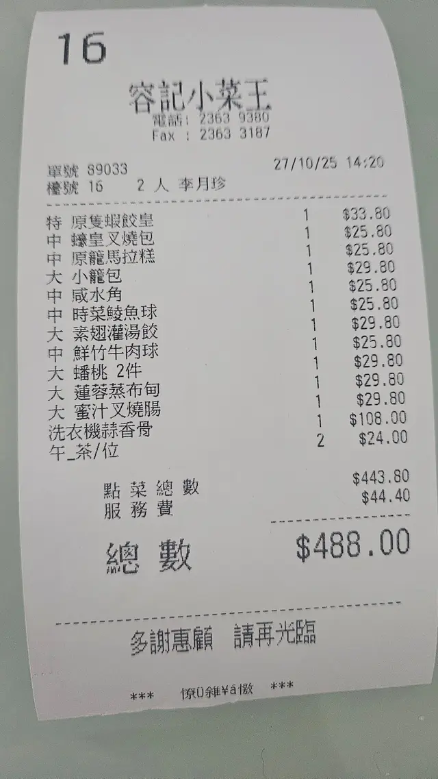 腸粉皮薄滑嫩,內裡叉燒肥瘦適中,蜜汁香甜不膩,有特色的是加了蔬菜更加清新!