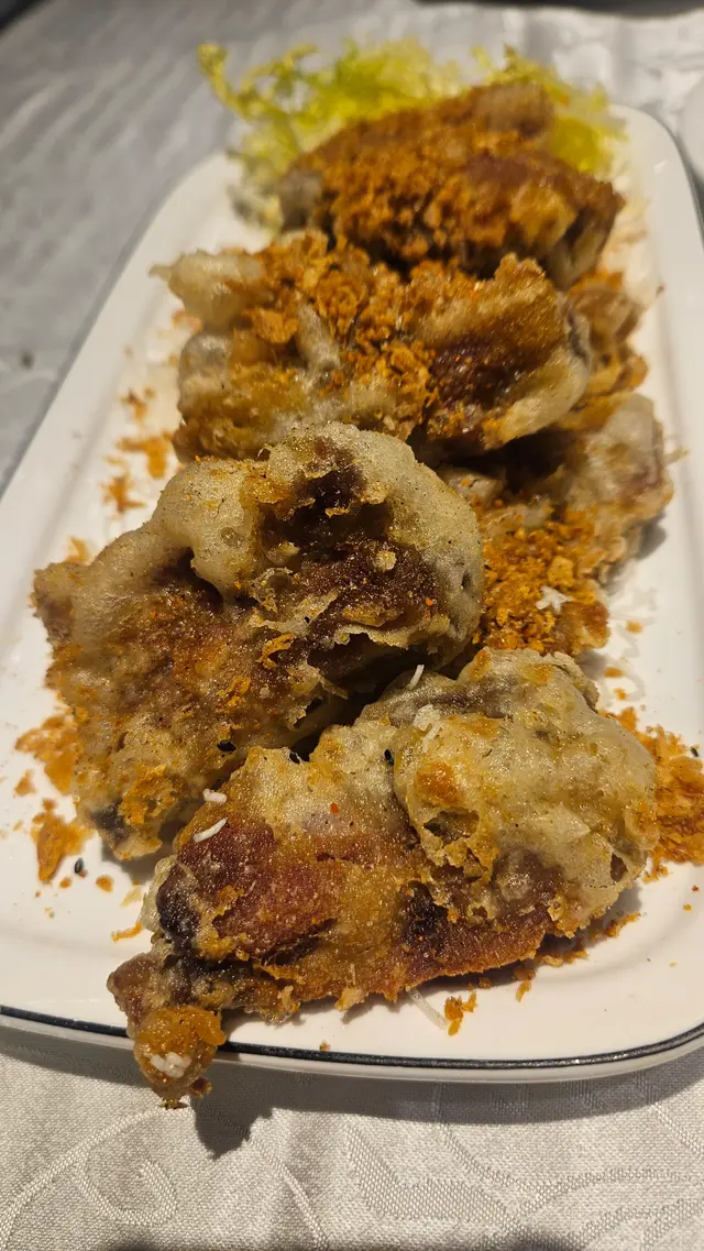 一上桌就聞到濃郁的陳皮香與蒜香交融,外層炸得酥脆,內裡肉質軟嫩多汁,陳皮的微甘更提升了整體層次,份量好大!