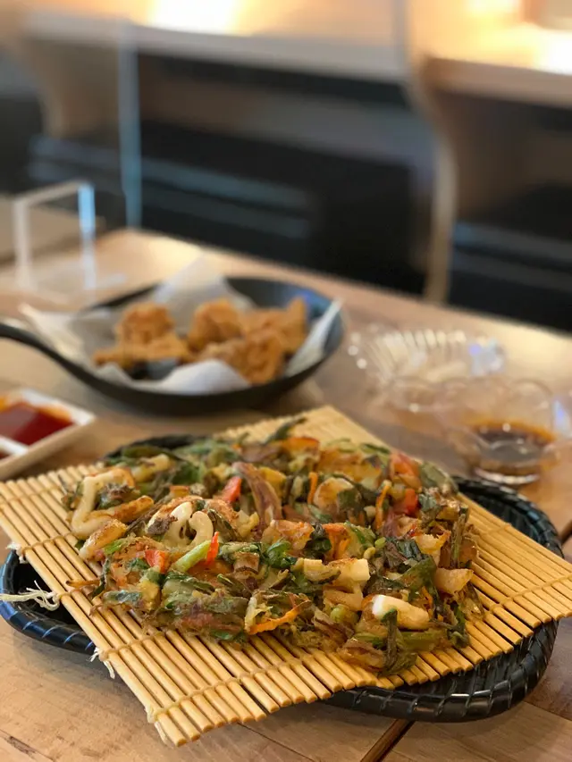 但呢個韓式海鮮蔥餅就大大不同,麵粉量極少亦能夠將食物連住,繼而提昇食材直接入口口感。