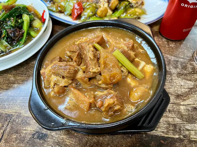 枝竹牛筋腩煲$98,牛腩炆得軟腍入味,汁多伴飯一流,連平日小飯的小妹,都不知不覺吃了一大碗。