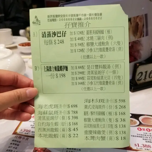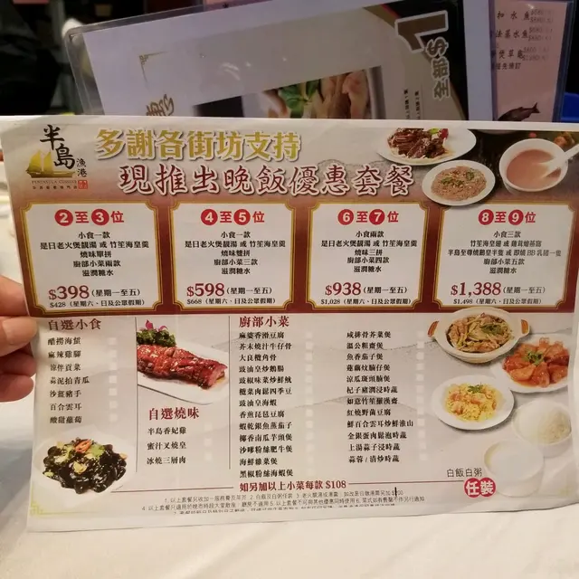 經濟小菜 BoneyahLevel 42020-10-11440 views Follow 平日好少去食中菜,今日嚟唔食打邊爐,試下食小菜。估唔到小菜套餐都好經濟,免諗點咗個4至5人餐5小食要個醋撈海蜇,燒味梗係要我至我冰燒三層腩。冰燒三層肉皮脆肉嫩,加埋肥肉正醋撈海蜇醋撈海蜇唔太酸夠開胃。竹笙海皇羹當晚老火湯係黃瓜湯,但朋友鍾意食竹笙,所以點竹笙海皇羹。侍應好好幫手分埋落碗,我哋可以一路傾一路食。黑椒粉絲海蝦煲黑椒粉絲海蝦煲,唔使蝦肉爽,粉絲吸曬蝦嘅鮮味。杞子豬潤浸時蔬杞子豬潤浸時蔬,豬潤超滑, 個湯送飯一流。豉油皇鵝腸豉油皇鵝腸夠爽口豐富嘅晚餐過後,侍應很好主動問,我哋上唔上要糖水,服務好細心。後尾見到有啲孖寶套餐都好抵食,下次帶埋阿爸阿媽嚟試下。The above review is the personal opinion of a user which does not represent OpenRice's point of view.LikeShare經濟小菜 半島漁港/阿翁火鍋館 https://s.openrice.com/QrKT017Cw00Report Post Ratings5Taste4Decor4Service4Hygiene4ValueRecommended Dishes冰燒三層肉醋撈海蜇竹笙海皇羹黑椒粉絲海蝦煲杞子豬潤浸時蔬豉油皇鵝腸Date of Visit2020-10-08Dining MethodDine InType of MealDinner