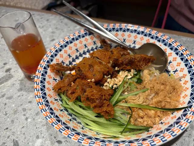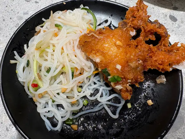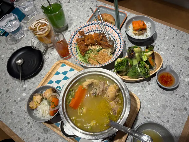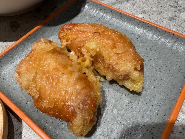 🍝我哋又叫咗軟殼蟹撈檬粉,軟殼蟹炸得金黃酥脆又大件多肉,仲有肉鬆、青瓜絲同花生碎,落埋越式檬汁,一啲都唔膩。我哋跟餐加錢叫咗兩件越式蒜蓉牛油雞翼。雞翼超大件,裹粉再炸過外皮好鬆脆,入面雞肉嫩滑,